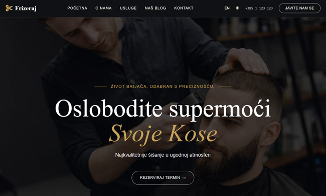 Web stranica za frizeraj. Korisnicima omogućuje pregled usluga, cijena i rezervaciju termina.